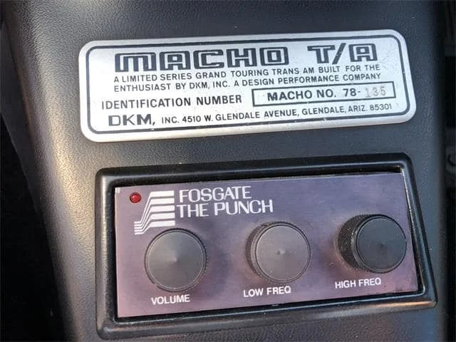 Concord/Rockford-Fosgate Stereo: Predominately, Macho T/A’s were ordered with the UN9 Radio Accommodation Package, which was essentially the provision for all the stereo hardware with no GM Delco stereo. While there are a handful of Macho T/A’s that were ordered with a GM Delco U58 AM/FM Stereo most, if not all Machos received a Concord HPL-101 or similar stereo deck with the Fosgate amplifier system. Not all received “The Punch” Fosgate controller, and there was always the option to upgrade the audio set up further.